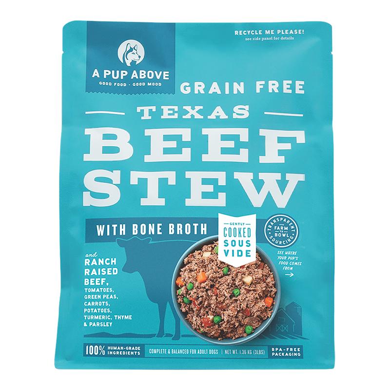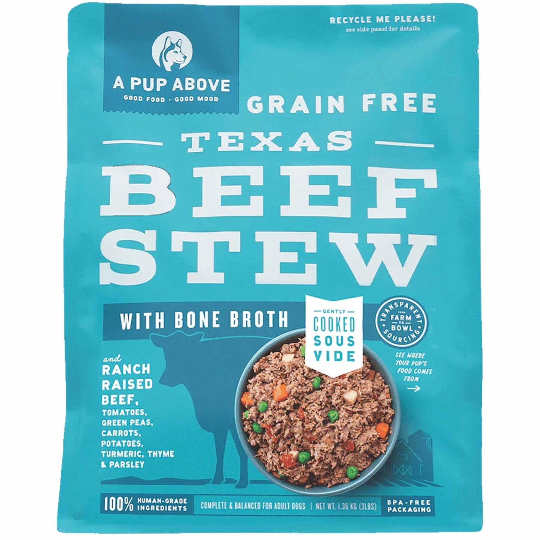 Holy cow! The Texas Beef Stew Sous Vide Dog Food from A Pup Above is a delicious and nutritious recipe your pup will love! Made with 100% human-grade ingredients, this grain-free recipe features non-GMO veggies, wholesome bone broth for joint health, and tasty superfoods like turmeric, thyme, and parsley for immune and digestive support. High in protein at 10 g per 100 kcal, you can feel good about feeding your pooch this nourishing recipe made with single-source, ranch-raised beef without antibiotics or hormones. Your furry friend will give this udder-ly tasty recipe two paws up!