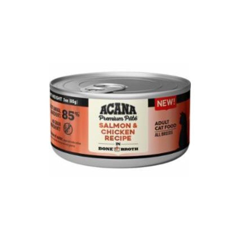 ACANA PREMIUM PÂTÉ™ Salmon & Chicken Recipe in Bone Broth Adult Cat Food is formulated to meet the nutritional levels established by the AAFCO Cat Food Nutrient Profiles for maintenance.