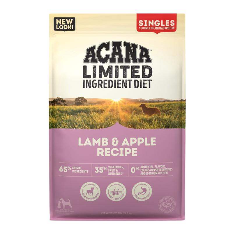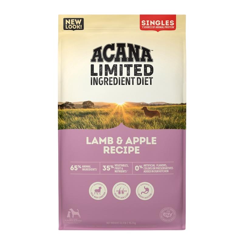 Limited ingredient diets don't have to be boring. ACANA Singles Lamb is loaded with 65% quality animal ingredients in WholePrey ratios of meat, organs, and cartilage, teamed up with whole Red Delicious apples for a taste that will delight your dog! The protein and nutrition your canine needs to thrive, in a satisfying meal sure to bring tail-wagging happiness! Made in Canada.