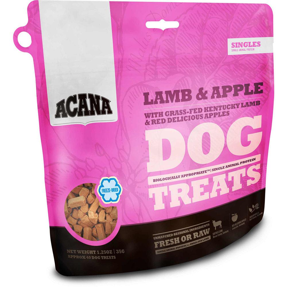 Dogs are carnivores no matter how big or small, so reward them like one! Acana's limited ingredient treats blend fresh, farm-raised lamb and crisp organic apples to create a yummy, wholesome reward!