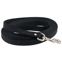 Whether you're training your dogs for shows and agility courses, practicing recall, or just looking for a leash with some extra length, the Black Nylon Training Leash by Auburn Leathercrafters is a must-have! It's made from heavy duty, woven nylon assembled with a nickel-plated snap. Both ends are reinforced with both stitching and smooth capped rivets for extra security.
