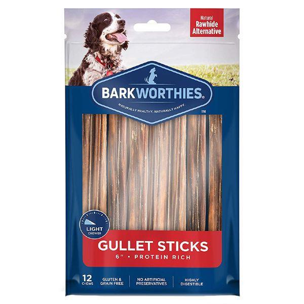 From the American Pride Collection, these 6" Barkworthies Gullet Sticks are satisfying and are perfect for light chewers to promote good dental health.