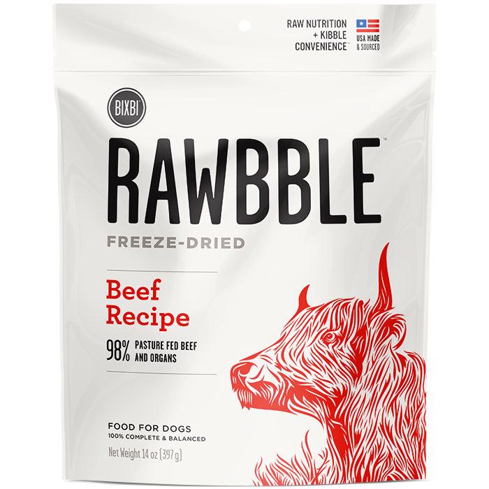 Rawbble mixes the convenience of kibble with the nutrition of raw food to make a freeze-dried cuisine that'll delight your dog. Since most food loses a large chunk of nutrients during the cooking process, Rawbble uses a special free-drying technology to preserve every last nutrient from their pasture-fed beef. 98% meat, bones, and organs. 100% American-made. Can be used as a treat, a topper, or a full meal.