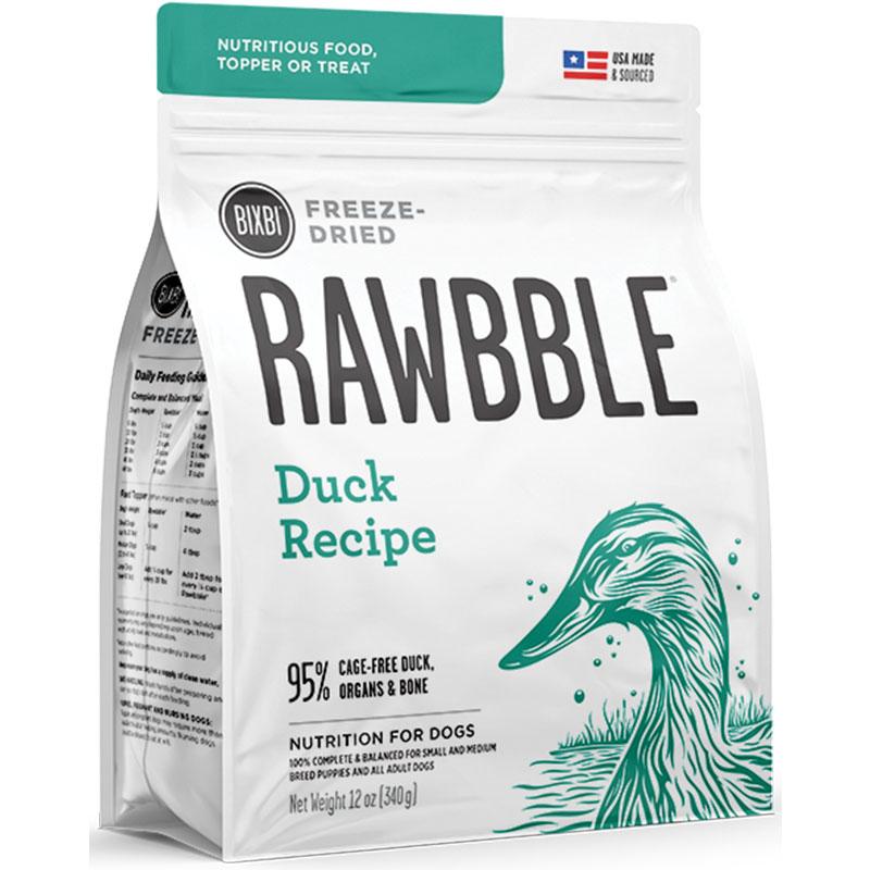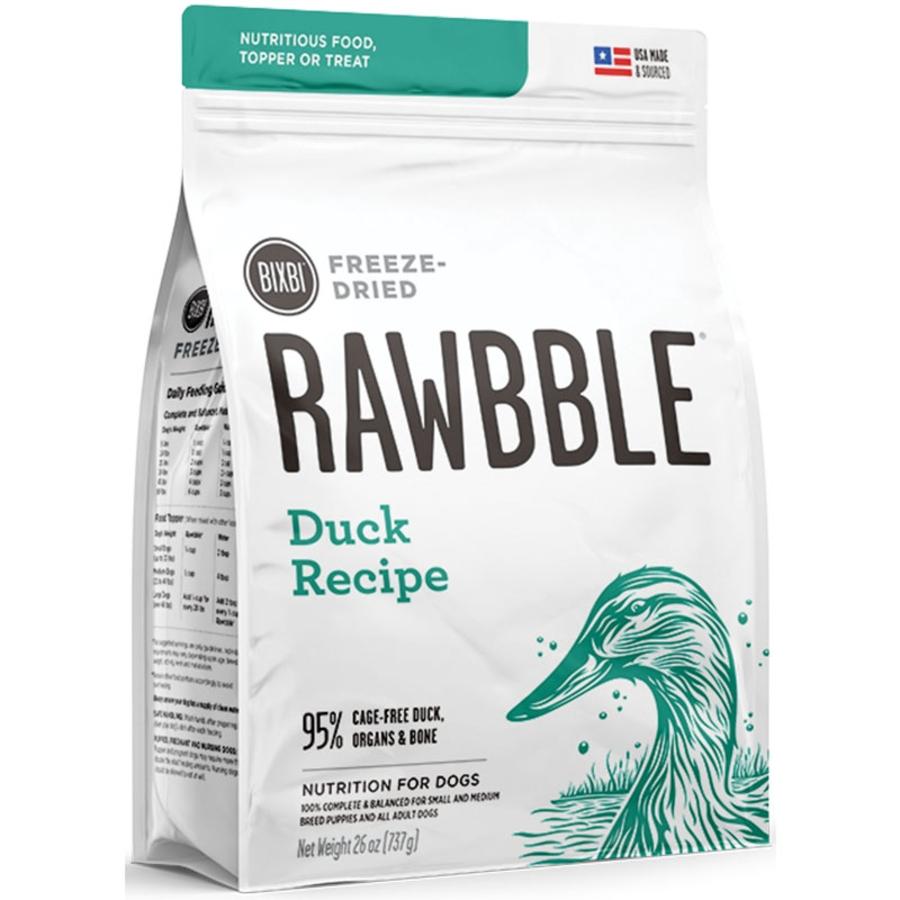 Rawbble mixes the convenience of kibble with the nutrition of raw food to make a freeze-dried cuisine that'll delight your dog. Since most food loses a large chunk of nutrients during the cooking process, Rawbble uses a special free-drying technology to preserve every last nutrient from their free-range duck. 98% meat, bones, and organs. 100% American-made. Can be used as a treat, a topper, or a full meal.