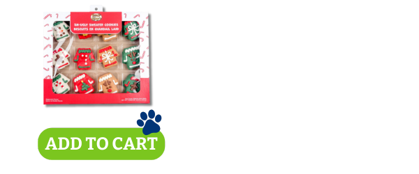 This 12-pack of frosted ugly sweater cookies delivers big holiday cheer in every crunch. Each cookie is playfully decorated, making them perfect for gifting, sharing, or filling your pup’s treat jar all season long.