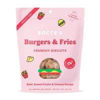 Grab a crunchy treat to go! Burgers & Fries Biscuits by Bocce's Bakery are made with five simple ingredients and are sure to become your pups "fast food" favorite.
