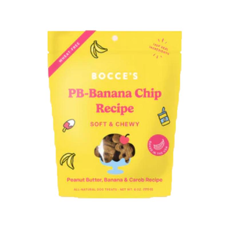 Peanut butter and bananas are a classic combination and Bocce's Bakery brings them together in these deliciously delightful PB-Banana Chip Soft & Chewy Treats. These baked limited ingredient treats contain only 9 real ingredients, including oat flour, peanut butter, flaxseed and bananas, for a healthier treat option that is perfect for everyday snacks! Change up your dog's daily crunchy treat with these tasty soft and chewy treats. Stock up and make room in the treat cabinet, your pup will love them! Net wt. 6 oz. Made in the USA.