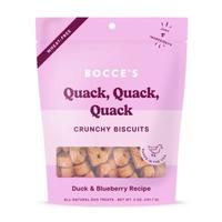 One look at the ingredients and you'll see why these are a doggie favorite! Bocce Bakery's Quack, Quack, Quack Biscuits are delicious savory duck treats with antioxidant-rich blueberries in a delightful recipe your dog can't resist. 100% real ingredients, wheat-free and made in the USA. Stock up and always have on hand for treats or training. Net wt. 5 oz.