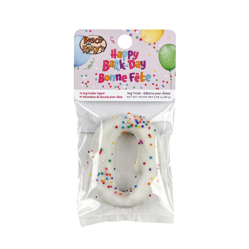Bosco & Roxy's Zany 0 colorful treat, is perfect for the tiniest pups, gotcha anniversaries, or anyone who knows that the party starts at zero.
