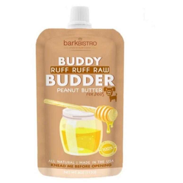 Pure, simple, and tail-wagging good! Bark Bistro?s Ruff Ruff Raw Buddy Budder is an all-natural peanut butter treat made for licking, rewarding, and enriching fun.