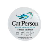 Cat Person Shreds in Broth Tuna & Salmon provides a complete and nutritious meal to keep your cat healthy and hydrated. 2.75 oz. cup.