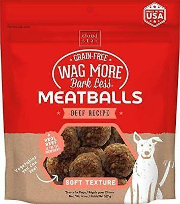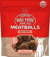 Everyone loves meatballs and these are as close to homemade as you can get! Wag More Bark Less Beef Recipe Meatballs from Cloud Star are delicious limited ingredient treats with a smoky beef flavor your dog will love. USA sourced meat and healthy veggies are baked to perfection in a simple, tempting treat your dog will love. Grain free, no added gluten, no corn, wheat, soy, animal by-products, artificial colors or flavors. Make room on the treat shelf, these will be a favorite with your pet. Net wt. 14 oz. Made in the USA.