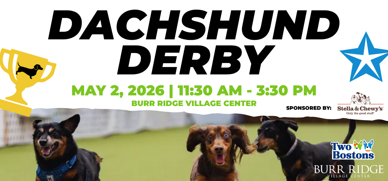 Join Two Bostons and Burr Ridge Village Center for a live dachshund race packed with prizes, games, treats, and serious long-dog bragging rights.