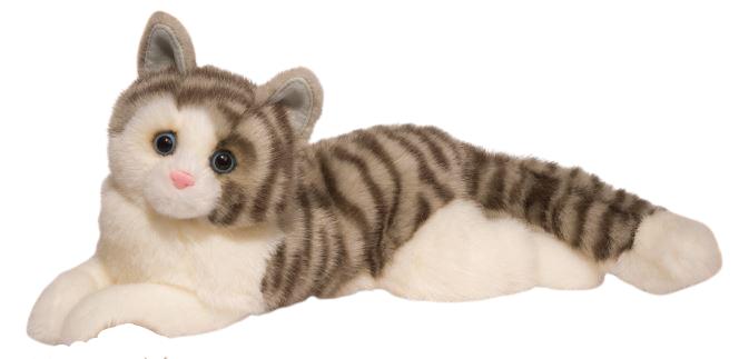 Soft, cute, and cuddly - Smokey the Gray Cat has got it all! This sweet kitty made by Douglas Toys features a lovely striped coat with grey tabby markings. From her long fuzzy tail to her cute pink nose, Smokey's charm is sure to melt your heart. She makes a delightful gift for the cat lovers in your life! Smokey Gray Cat toy measures: 15" long