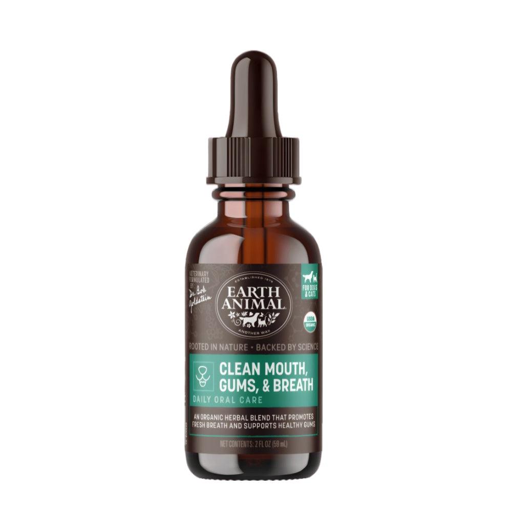 Give your pet kissable-fresh breath with Earth Animal's Clean Mouth, Gums & Breath Organic Herbal Remedy. Specially formulated to neutralize odor and support healthy inflammation response to soothe gums. Handcrafted in Vermont using a proprietary blend of organic herbal extracts - myrrh gum, echinacea purpea leaf, goldenseal root, calendula flowers, amla, licorice root, clorophyll, aloe vera gel, and essential oils of sweet orange and grapefruit. Made in the USA.