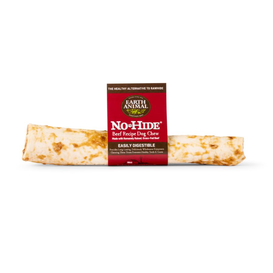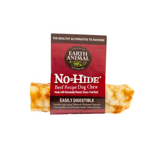 Unacceptable ingredients are just that. Luckily, Earth Animal has come up with an alternative to rawhide; it's No-Hide! Originally a chicken chew, Earth Animal has now added savory beef or salmon chews to their No-Hide line of treats. The new No-Hide Beef Chews are a 100% digestible chew, made of nutritious beef and not hide. These chews give the long-lasting enjoyment of rawhide and promote healthy teeth and gums, but with a safe chew you can trust!