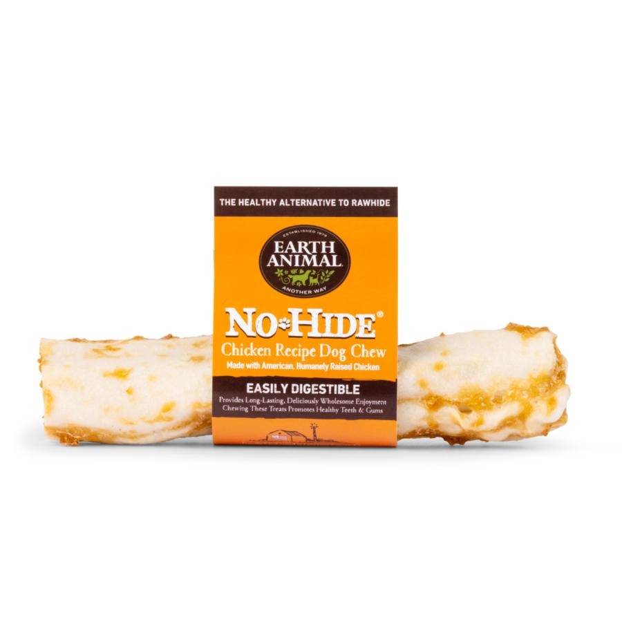 Unacceptable ingredients are just that. Luckily, Earth Animal has come up with an alternative to rawhide; it's No-Hide! No-Hide Chicken Chews are a 100% digestible chew, made of nutritious chicken and not hide. These chews give the long-lasting enjoyment of rawhide and promote healthy teeth and gums, but with a safe chew you can trust!