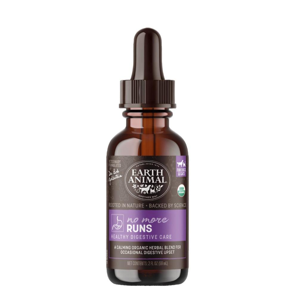 Digestive upsets happen. Earth Animal's No More Runs Organic Herbal Remedy brings soothing relief to your pet with an easy to use proprietary blend of organic & wildcrafted herbal extracts of chamomile, white oak bark, meadowsweet, bayberry root, and slippery elm. Calms and soothes your pet's digestive tract and supports healthy digestion and bowel health. For oral use in dogs and cats only. Made in USA.