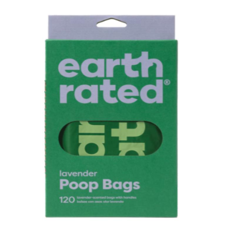 Earth Rated's 120 Easy-Tie Handle Lavender Scented Poop Bags are 100% guaranteed leak-proof (we've all been there!) and lightly scented to mask odors. Convenient handles for easy tying and made from 65% certified post-consumer recycled plastic. Pick up this pack to always have extras on hand. Great for multi-dog households or just stocking up. Also great for cat litter scoops. Use in the Earth Rated dispenser or on their own. Each lavender-scented bag measures 7 x 13.5 inches (including handles).