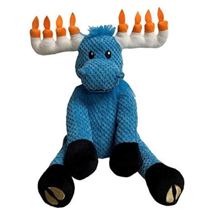 Surprise your best buddy with a new friend this season with the festive Hanukkah Moose Floppy Toy by Fabdog! Darling 11 blue moose with squeakers and menorah antlers is ready to light the way to friendship and fun, whether it's a game of fetch or hide and seek. When your pooch is all tired out, Moose's cuddly soft fabric and polyfilled body make him an especially good naptime buddy.