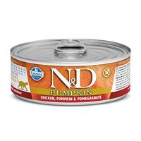 Food based on science with happy healthy pets in mind! Farmina's Natural and Delicious Chicken and Pumpkin recipe is freshly cooked with just in time production so your cat is getting peak nutrition. Free range Italian chicken, wild caught herring from the North Sea, pumpkin and antioxidant rich pomegranate are combined to make this delicious balanced meal that will have your cat purring for more. Add Farmina's N&D Chicken and Pumpkin grain free, protein and moisture rich food to your cat's diet for optimal nutrition.