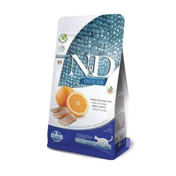 A delicious fish recipe your feline friend will love. Natural & Delicious Herring & Orange for Cats by Farmina is formulated with 98% protein from animal sources. Natural antioxidants and low glycemic index. There are no grains, GMOs, added hormones, or byproducts. Every bag is specially sealed with nitrogen rather than oxygen to keep your pet's food fresh for longer.