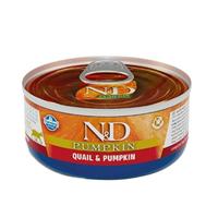 Food based on science with happy healthy pets in mind! Farmina's Natural and Delicious Quail and Pumpkin recipe is freshly cooked with just in time production so your cat is getting peak nutrition. Free range Italian quail and chicken, wild caught herring from the North Sea, pumpkin and antioxidant rich pomegranate are combined to make this delicious balanced meal that will have your cat purring for more. Add Farmina's N&D Quail and Pumpkin grain free, protein and moisture rich food to your cat's diet for optimal nutrition.