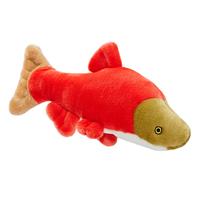 The best catch in town! Your pup will be hooked on the Cedar Salmon plush toy from Fluff & Tuff from the get-go. Designed for longer-lasting play, this toy has double-stitched seams and a thick, durable extra lining that makes it great for tossing, shaking, and tugging. Super soft and machine washable, this friendly fish also makes for a comfy naptime pillow! Whether your pup likes to snuggle or play, Cedar Salmon is ready for it all! Toy measures 14" long.