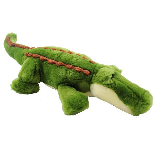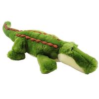 Out of the swamp and into your house just in time for play time comes Georgia the Gator! This plush dog toy has double stitched seams along with thick mesh under layers to make it durable against your tougher chewer. The plush material is non-toxic and the eyes are stitched to make Georgia the Gator the perfect safe toy for your playful pooch! Plus in this toy is a stitched pouch containing a squeaker that is sure to keep your dog entertained! This toy doesn't bite so get Georgia the Gator from Fluff and Tuff for play time today!