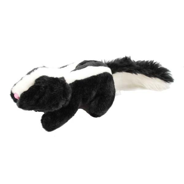 We promise that Lucy the Skunk will be all fun play for your pup and no smelly skunk scents! This plush dog toy has double stitched seams along with thick mesh under layers to make it durable against your tougher chewer. The plush material is non-toxic and the eyes are stitched to make Lucy the Skunk the perfect safe toy for your playful pooch! Plus in this toy is a stitched pouch containing a squeaker that is sure to keep your dog entertained! There's no need for the nose plug with Lucy the Skunk from Fluff and Tuff!
