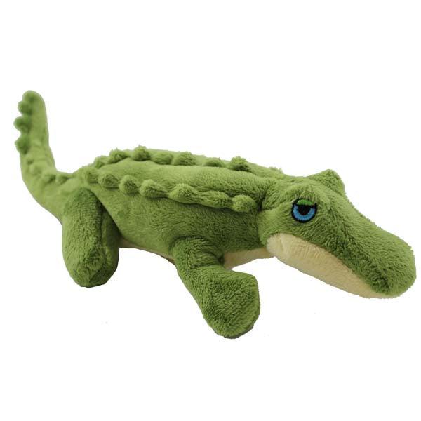 Out of the swamp and into your house just in time for play time comes Savannah the Gator Baby! This plush dog toy has double stitched seams along with thick mesh under layers to make it durable against your tougher chewer. The plush material is non-toxic and the eyes are stitched to make Savannah the Gator Babay the perfect safe toy for your playful pooch! Plus in this toy is a stitched pouch containing a double squeaker that is sure to keep your dog entertained! This toy doesn't bite so get Savannah the Gator Baby from Fluff and Tuff for play time today!