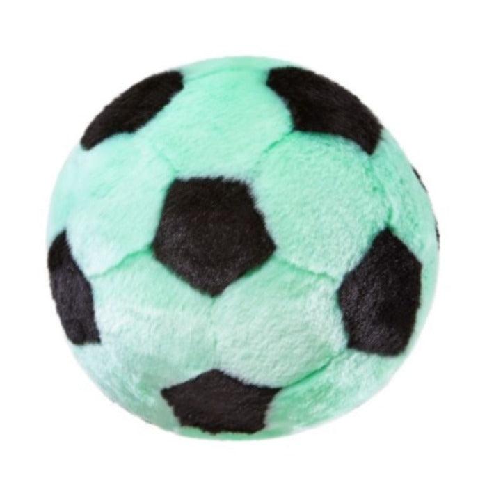 Indoors or outdoors, the Squeakerless Soccer Ball is one fun toy! Colorful 7" diameter ball has a plush outer cover that is lined with thick, durable Tuffweb mesh liner and non-toxic polyester fill. Fun, tough and soft? Score!