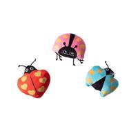 Toys measures: Blue lady bug: 4" h x 3.5" w, Red lady bug: 4.5" h x 5" w, Pink lady bug: 3" h x 4.5" w