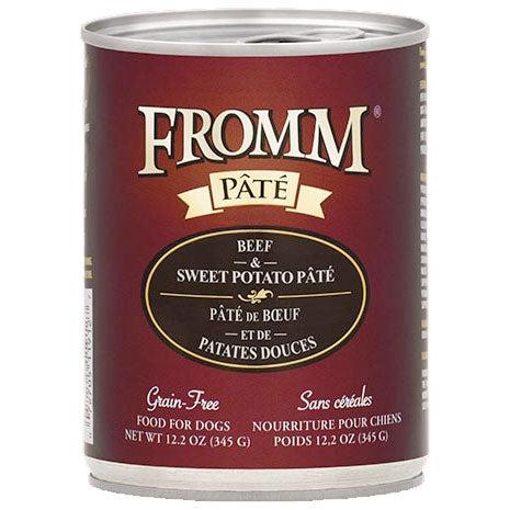 Is your dog a meat & potatoes lover? Each can has a healthy portion of Fromm's beef cooked in beef broth served with sweet potatoes, lentils, and carrots. It's the tastiest way to give your pup an extra nutritious boost of moisture in their diet! There are no grains, added hormones, or byproducts. Every recipe can be rotated with other varieties of Fromm without causing stress to the digestive system, so be sure to try every delicious flavor we have to offer! Available in 12.2 oz can. Made in the USA.