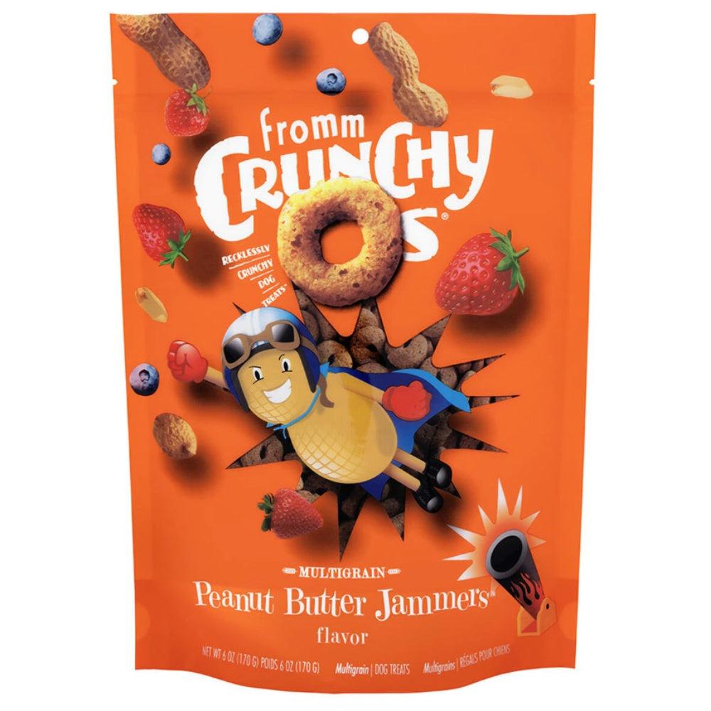 Peanut butter, strawberry, and blueberry are a classic sandwich combination and a favorite treat for everyone! New from Fromm, Crunchy O's PB Jammers are crunchy bite-sized multigrain delights just for pooches! And at only 2 calories per treat, they are perfect for training, or for any day snacks. These are sure to be a favorite treat your dog will love.
