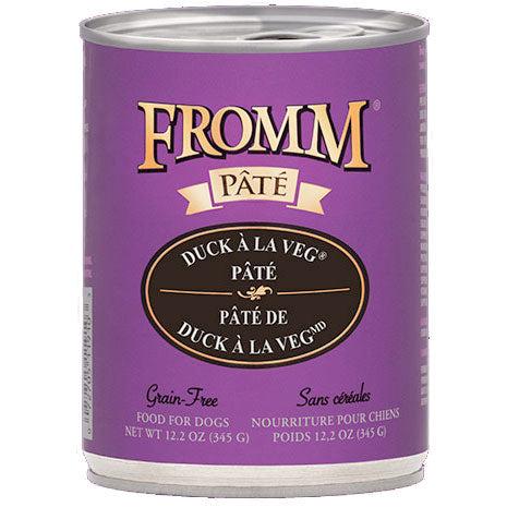 Fromm Duck A La Veg Pate will keep your pup wanting more after every meal! Fill their bowl with duck and turkey cooked in duck broth with sweet potatoes, lentils, carrots and broccoli. It's the tastiest way to give your pup an extra nutritious boost of moisture in their diet! There are no grains, added hormones, or byproducts. Every recipe is 100% made in the USA and can be swapped with other varieties of Fromm without causing stress to the digestive system, so be sure to try every delicious flavor we have to offer! Available in 12.2 oz can. Made in the USA.