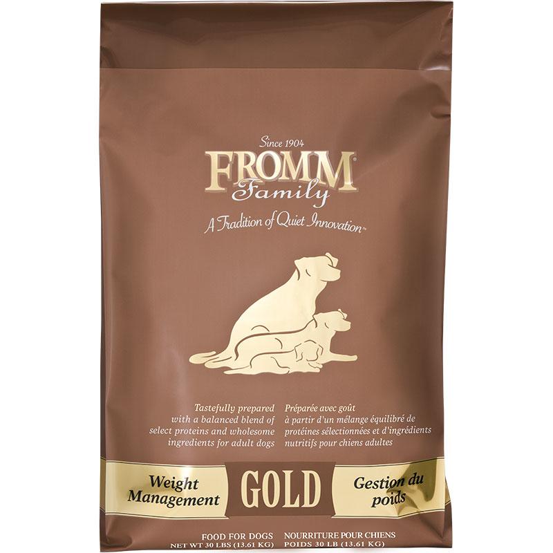 Fromm Family Weight Management Gold is a special blend of select proteins and wholesome ingredients. The formula was made with nutrients as the top priority, and healthy weight management as its inspiration. I To help dogs obtain and maintain a healthy weight, there is a special supplement of L-carnitine.