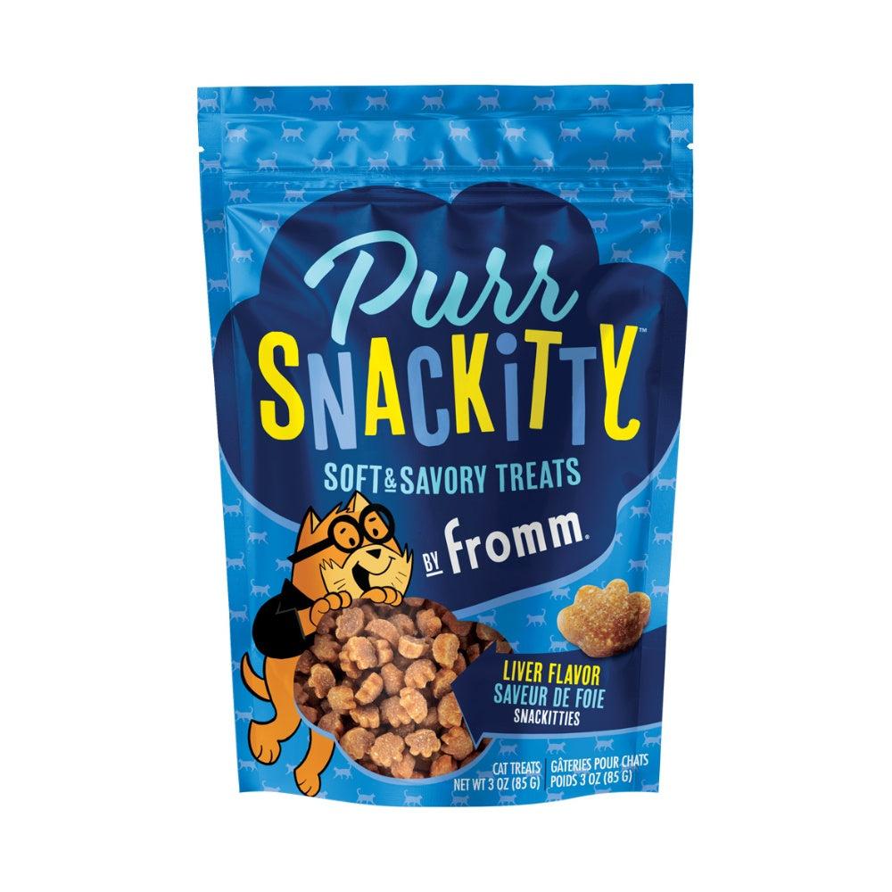 We've got to let the cat out of the bag: Fromm's Purr Snackitty Liver treats are the savory snacks your feline friend has been waiting for! Made with real chicken liver, these bite-sized treats are moist, tender, and, of course, delicious. Plus, at only 2 calories each, you can spoil your cat all you want! Full of flavor, your kitty will give these tasty treats two paws up! Net wt. 3 oz.