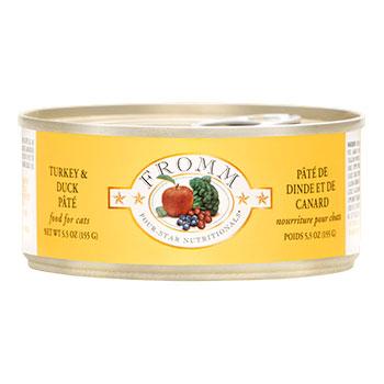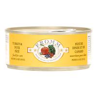 Fromm's Turkey and Duck Recipe contains only the best minced meat that has been USDA inspected for quality and nutrition. This Four-Star Formula works well alone or mixed with dry food for a great variety. The combination of meat and broth is even grain free as well. This canned cat food will have your cat meowing for more after the first can!