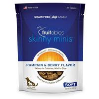 Fruitables Skinny Minis Pumpkin & Berry Flavor Treats are a delicious & healthy treat option. Made with fresh pumpkin & blueberries these superfood rich treats will definitely get your dog's attention! With only 3-1/2 calories per treat these soft baked treats are perfect for training, small dogs, and treat dispensing toys. Net wt. 5 oz. Made in the USA.