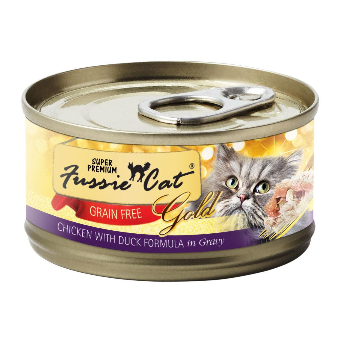 See your cat thrive with the food nature demands with Fussie Cat Chicken with Duck. This top quality recipe with chicken and duck as the main ingredients is produced in a FDA registered kitchen fit for producing human food. So add this decedent, protein rich, grain free food to your cat's diet and there will be no fussing. Available in 2.8 oz & 5 oz sizes.