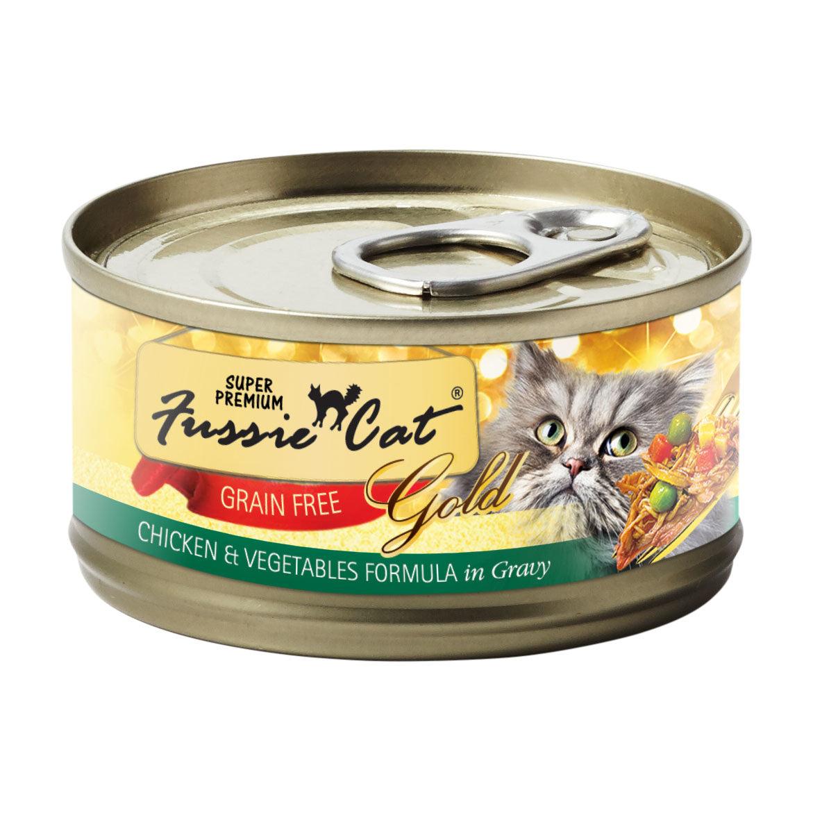 Your feline will love the fine fowl in this formula! Fussie Premium Chicken With Vegetables is for those fussy cats with picky tastes. In this canned formula for cats there is healthy proteins and fatty acids to help keep your cat's coat healthy and skin shiny . It also has DHA for eye and brain development. The Fussie Premium Chicken and Vegetables contains only the best cuts of chicken combined with carrots, potatoes and green peas to contribute healthy beta-carotenes, vitamins and minerals. Plus this formula is grain free! So encourage a healthier cat with the Fussie Premium Chicken With Vegetables! Available in 3 oz and 5 oz size.