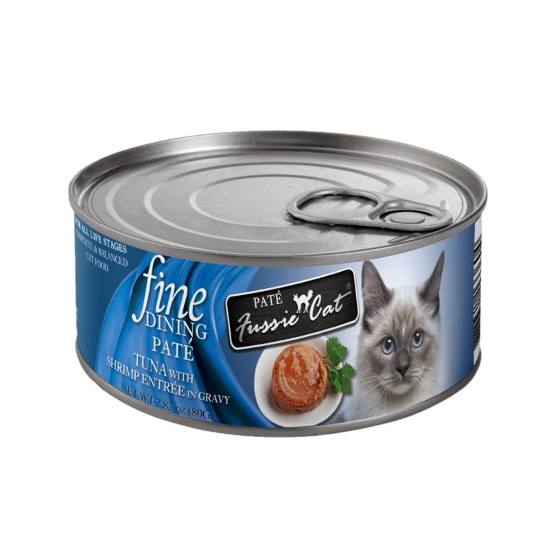 Fussie Cat's Fine Dining Tuna with Shrimp Entree in Gravy is full of fishy goodness! Perfect for picky eaters, this high-moisture formula is made with savory tuna, chicken, and shrimp for a feast your kitty won't forget. Plus, it's enhanced with vitamins and minerals to make it a complete and balanced diet for cats of all ages! Simply delicious, it will leave your furball's mouth watering!