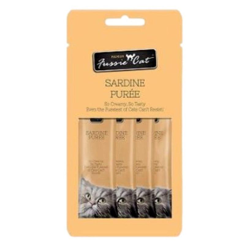 Fussie Cat's Sardine Puree Cat Treat Food Topper is a delicious treat that is sure to catch your cat's attention. Irresistibly creamy and delicious, this hydrating treat is perfect for finicky felines. Convenient individually-wrapped tubes contain wholesome ingredients with added vitamin E, perfect as a food topper, smeared on licki-mats or straight out of the tube! So tasty even the fussiest cat can't resist!