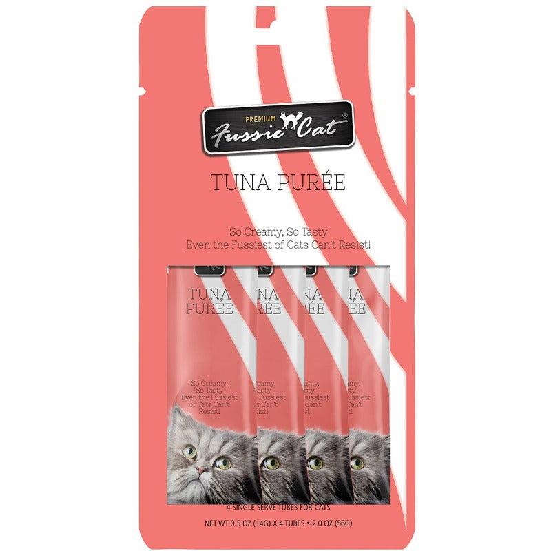 Fussie Cat's Tuna Puree Cat Treat Food Topper is delicious and nutritious. Convenient individually-wrapped tubes contain wholesome ingredients with added vitamin E, perfect as a food topper, smeared on licki-mats or straight out of the tube! A paw-licking delight your cat will love!
