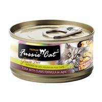 See your cat thrive with the food nature demands with Fussie Cat Tuna with Clams. This top quality recipe with tuna and baby clams as the main ingredients is produced in a FDA registered kitchen fit for producing human food. So add this decedent, protein rich, grain free food to your cat's diet and there will be no fussing. Net wt. 2.8 oz.