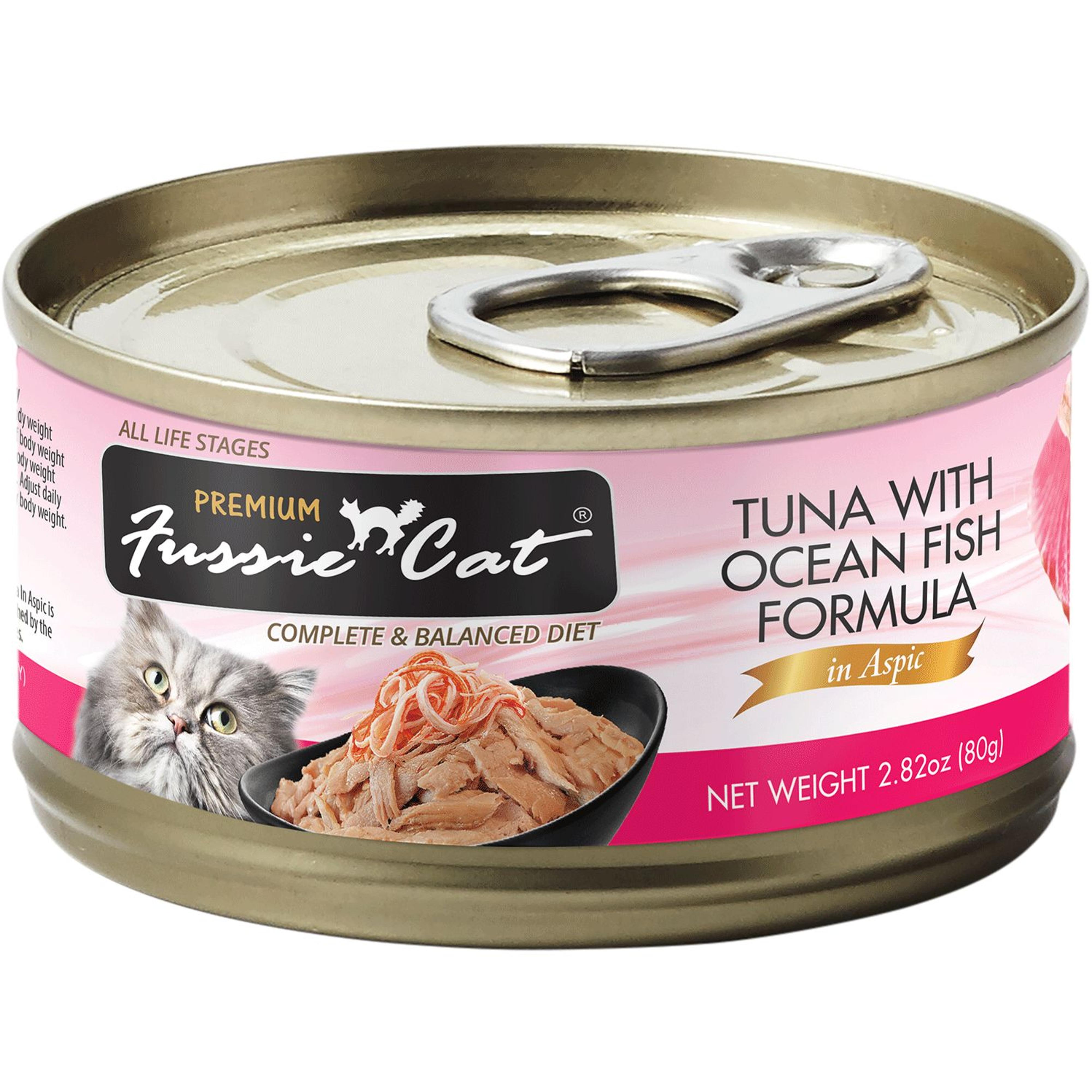 Fussie Cat's Tuna with Ocean Fish Formula in Gravy is the gourmet cat food your feline friend has been waiting for! A complete and balanced diet, this mouthwatering food is packed with succulent shreds of tuna and ocean fish and served in a hydrating gravy your kitty will love. Plus, this DHA-rich formula is fortified with vitamins and minerals so your cat gets the extra vision and brains support their body needs. Delicious and nutritious, we know this recipe will become a mealtime staple!