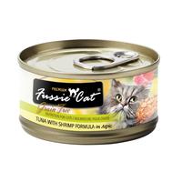 Your feline will love the super shrimp in this fine formula! Fussie Tuna With Shrimp is for those fussy cats with picky tastes. In this canned formula for cats there is healthy prebiotics to help keep your cat's digestive system in tip top shape. It keeps the good and bad bacteria balanced to prevent and treat diarrhea, constipation, and other bowel disorders. The Fussie Tuna With Shrimp contains only the best cuts of tuna and shrimp for your cat. Plus this formula is grain free! So encourage a healthy digestive system in your cat with the Fussie Tuna With Shrimp! 3 Oz