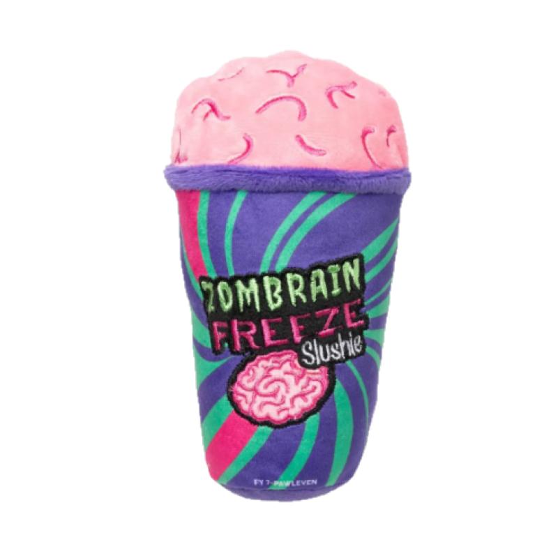 FuzzYard's Zombrain Freeze Slushie dog toy is perfect for a spooky fall day! Made with super soft fabric and stuffed with fluff, this exciting toy comes fitted with a squeaker for playtime that's so fun it's scary! Whether your pooch likes to fetch, squeak, or snuggle, this slushie is the treat they deserve this Halloween!