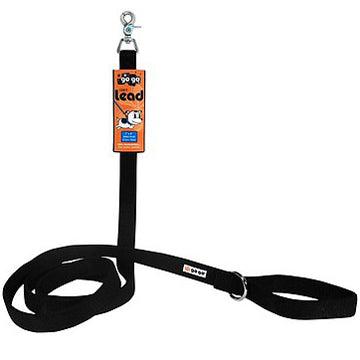 Your dog is always on the go, go, GO! So stay up to speed with the Gogo Black Dog Leash. This high-quality leash uses a heavy duty nylon that resists fading and fraying. The Gogo Black Dog Leash also features an easy to use scissor clasp that can spin to prevent tangling. As if this wasn't enough, this black dog leash from Artvark also has a strong D-ring near the handle for the Poop N' Go dispenser. So get going for that walk now with the Gogo Black Dog Leash! Measures 1" wide and 6ft long.